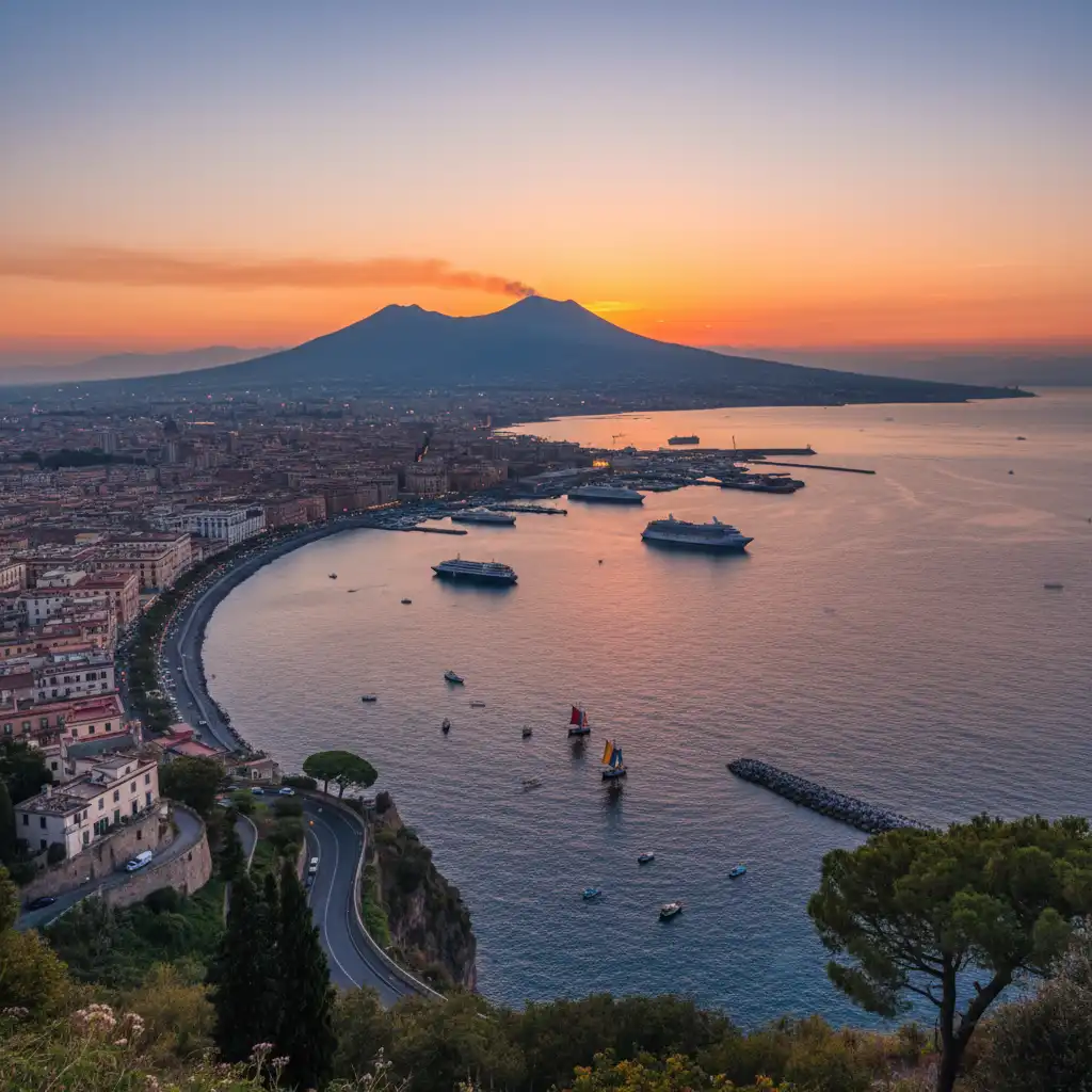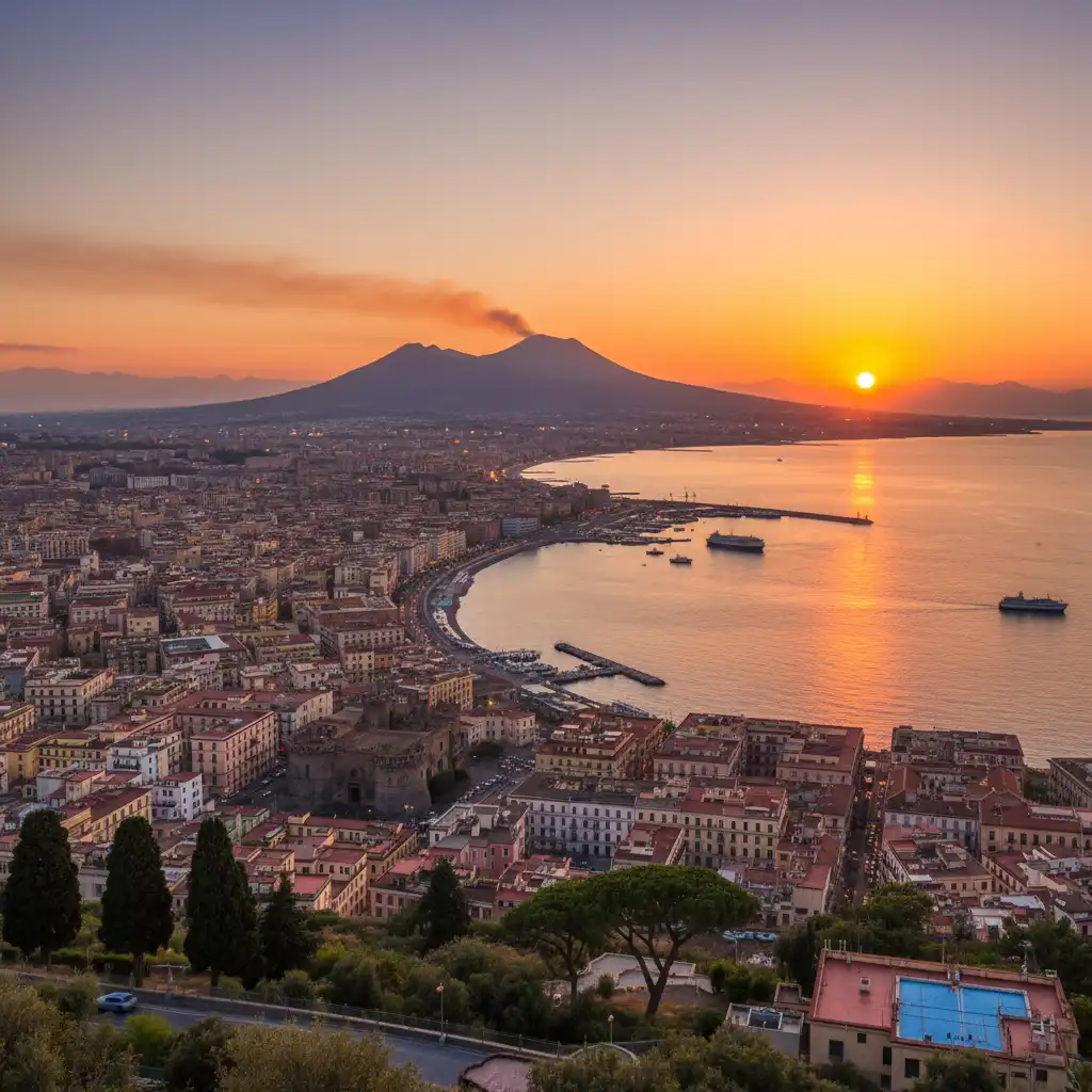 “Ogni alba sul Lungomare, il Vesuvio non è solo una montagna, ma l'anima di Napoli che si risveglia, dipingendo il cielo con promesse eterne”